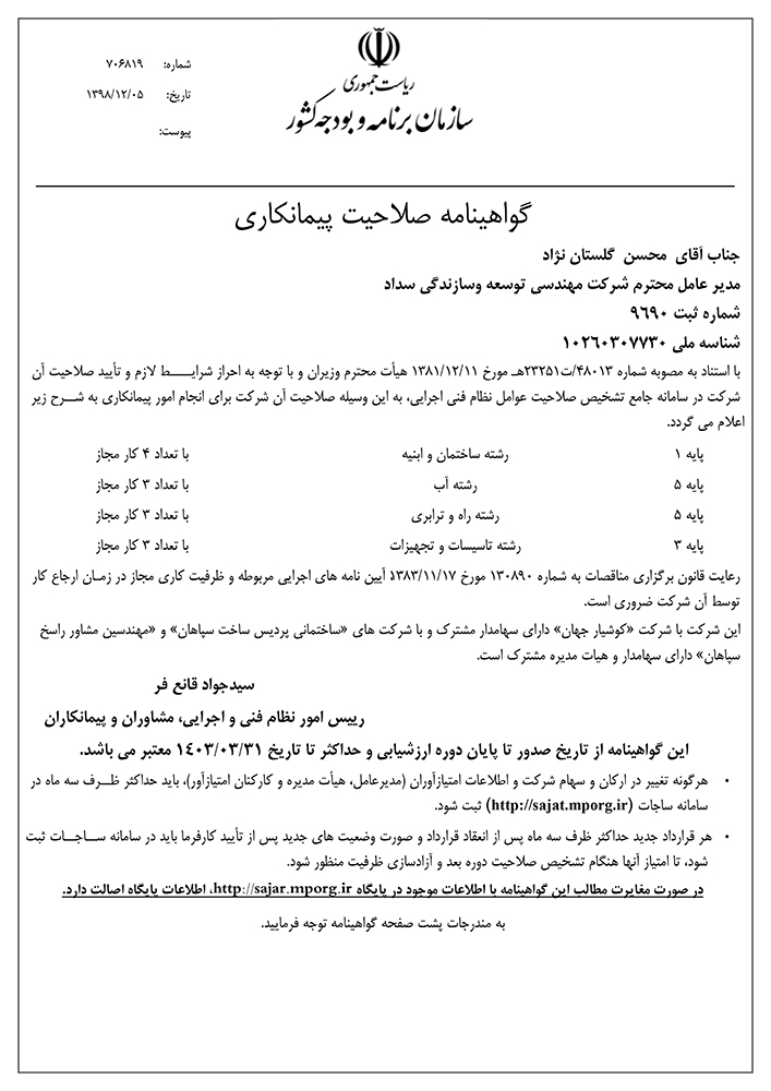 شرکت مهندسی سداد بنا